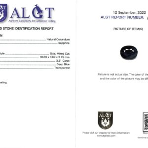 | INFOS | Saphir rare et naturel. Parfaitement adapté comme investissement ou objet de collection. Avec certificat ALGT complet. |