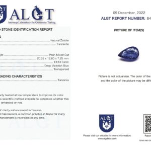 | CERTIFICATION | Rapport d'identification des pierres de couleur Algt |